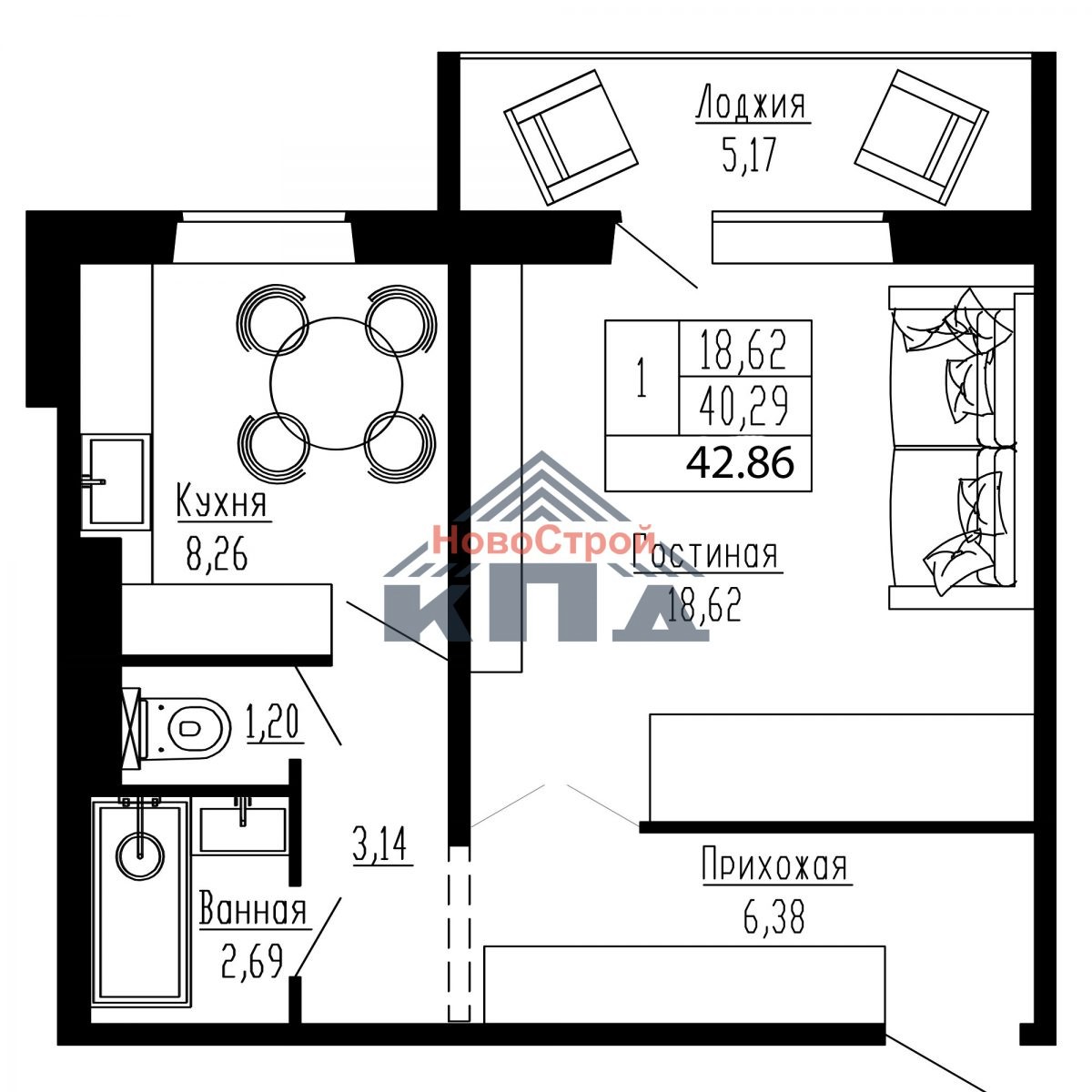 1-комнатная квартира 43,15 кв.м. В просторной жилой комнате, площадью почти 19 кв.м. можно разместить и спальное место, и кроватку для маленького члена семьи, и даже рабочее место. Из комнаты есть выход на большую лоджию, где на 5 кв.м. можно будет отдохнуть от рабочих будней и разместить велосипед или сезонные вещи. Рядом с небольшой, но очень уютной кухней расположен совмещенный санузел почти 4 кв.м. Он оснащен всем необходимым сантехническим оборудованием, на кухне вас будет ждать электроплита. В большой прихожей почти 6,5 кв.м. вы можете оборудовать вместительную гардеробную, что позволит вам не устанавливать громоздкий шкаф в комнате. Окна квартиры выходят на запад.