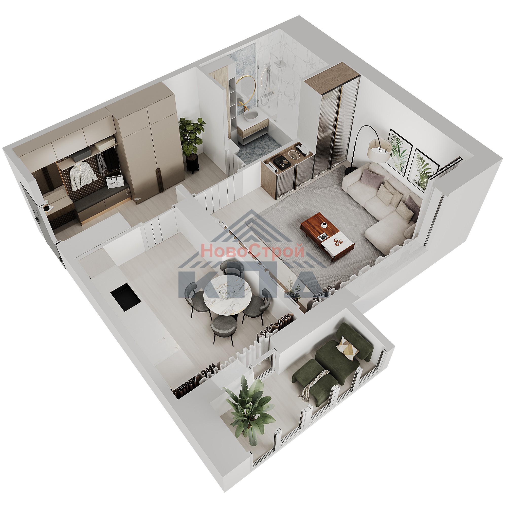 1-комнатная квартира 41,78 кв.м. с просторной кухней-гостиной почти 11 кв.м. Из кухни можно выйти на лоджию с панорамным остеклением около 4 кв.м. с отличными видами на зеленый массив. Помимо возможности для отдыха и хранения сезонных вещей, хозяйки очень ценят, когда им удобно вывесить на лоджию белье или быстро заморозить пельмени. Увеличенное пространство на кухне, позволит вам использовать жилую комнату, квадратную в плане, под спальню. Здесь же может расположиться кабинет или кроватка для самого маленького члена семьи. В большой прихожей разместиться шкаф-купе. Совмещенный санузел более 4 кв.м. оснащен всей сантехникой. На кухне устанавливается электроплита. Окна квартиры выходят на юг.