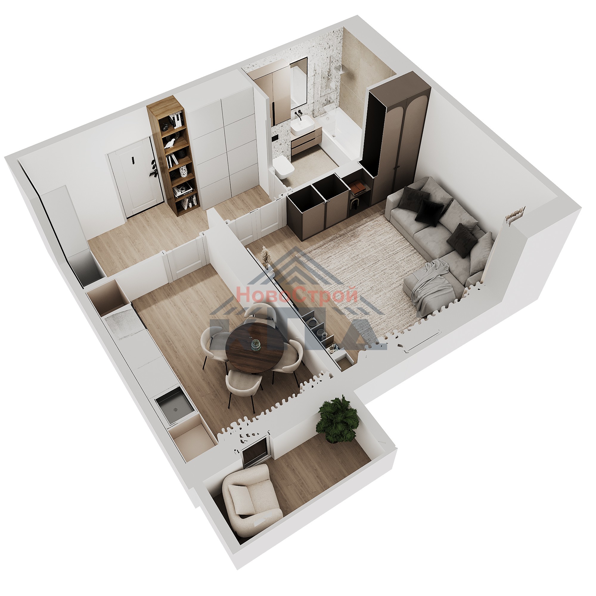 1-комнатная с просторной кухней-гостиной и гардеробной…