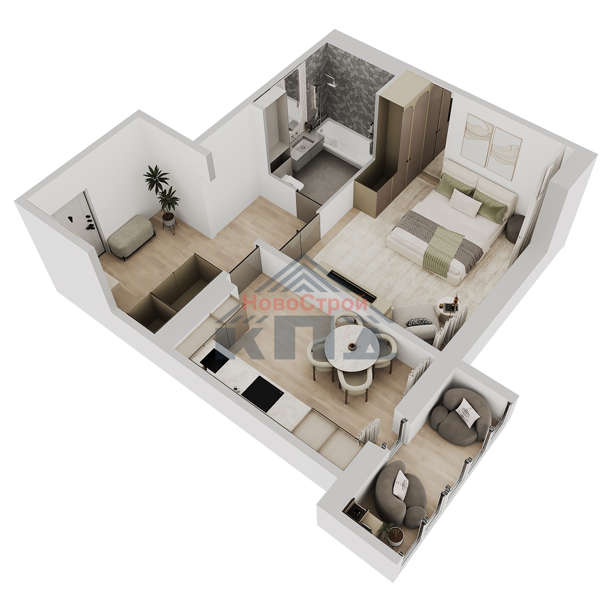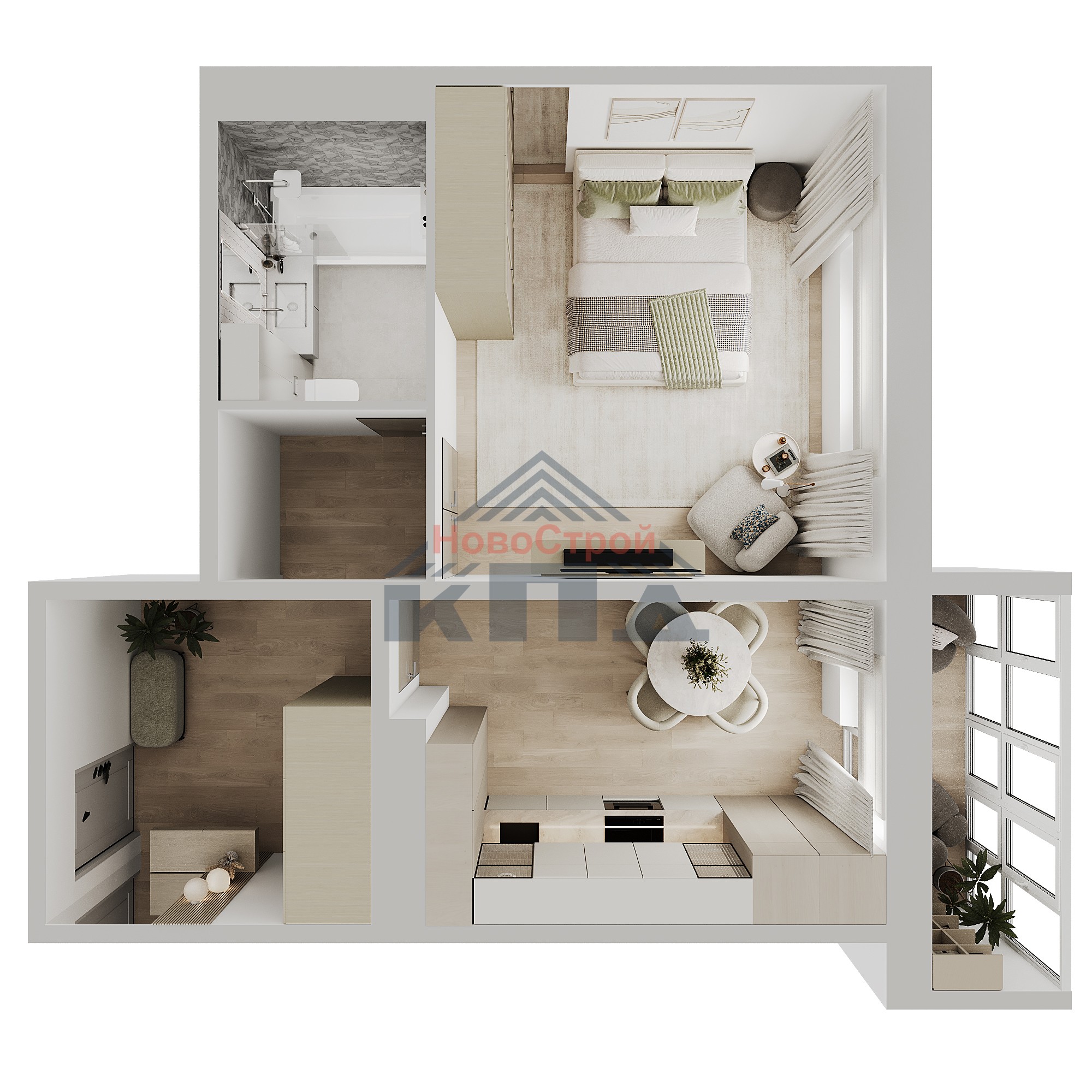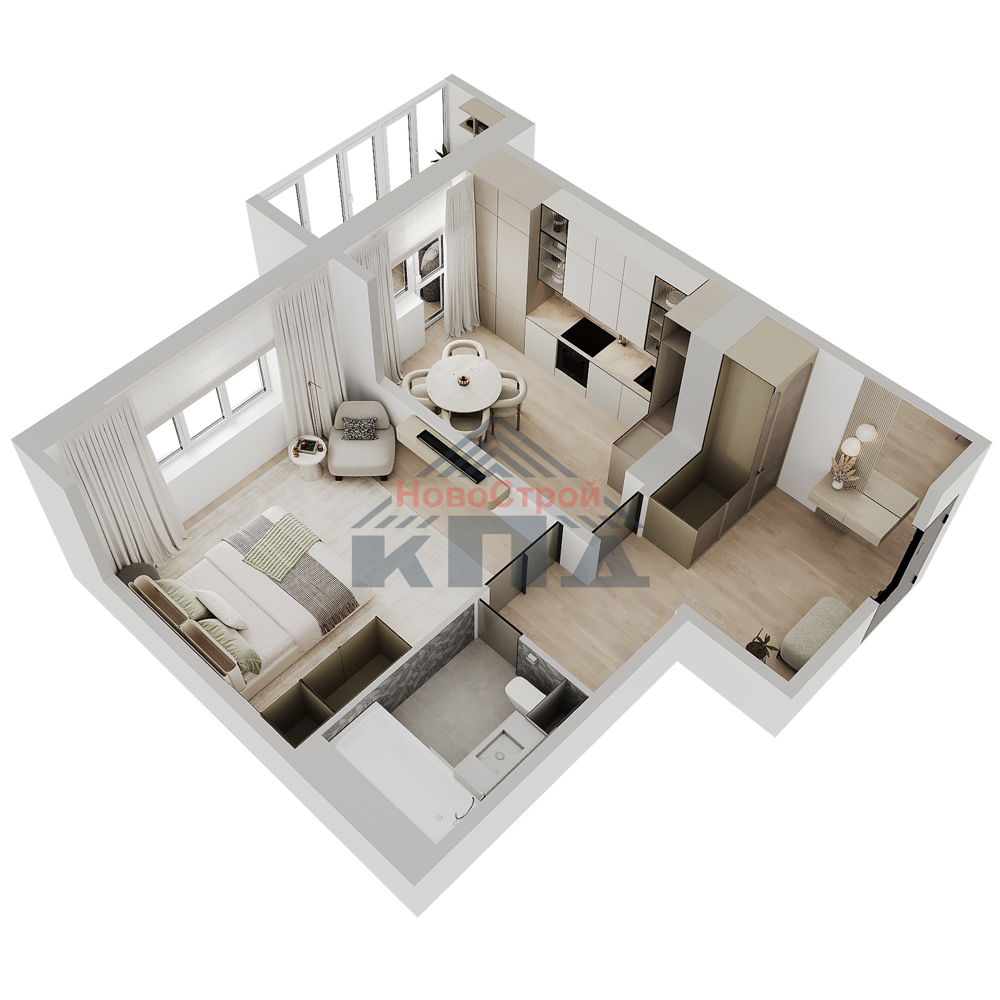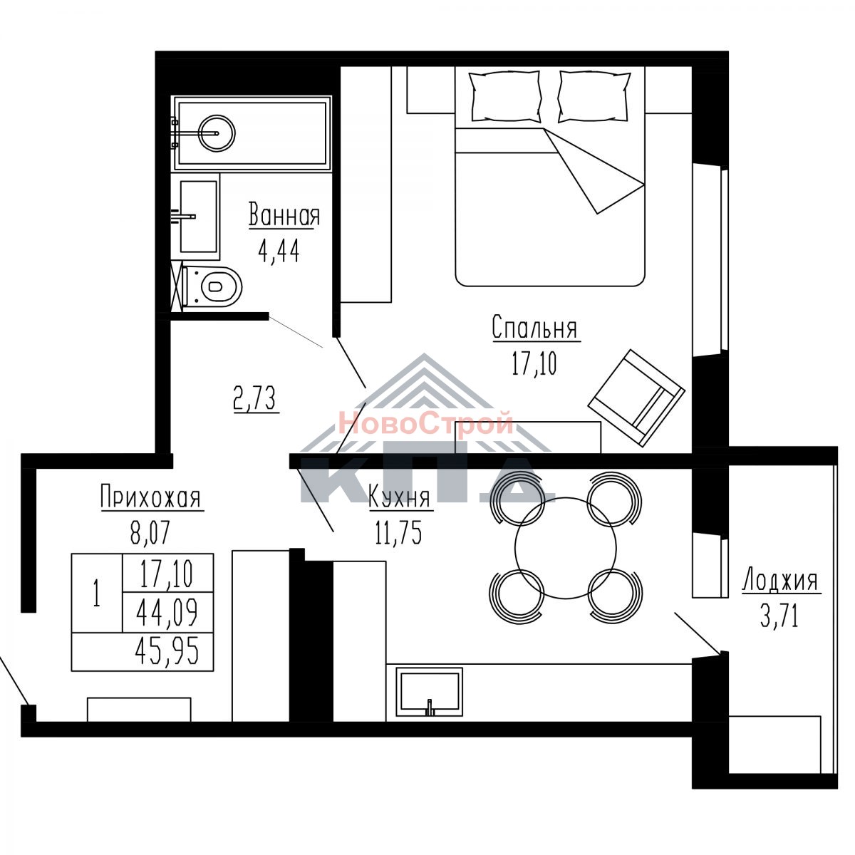 1-комнатная квартира 48,58* кв.м. (45,95 кв.м.; 46,15 кв.м; 48,16 кв.м.; 48,6 кв. м.) с увеличенной по площади кухней-гостиной почти 12 кв.м. и просторной лоджией. Выходы на лоджию из кухни. Панорамное остекление даст вам возможность отдохнуть, любуясь отличными видами на зеленый массиву озера и на ЖК «Одоевский».Помимо возможности для отдыха и хранения сезонных вещей, хозяйки очень ценят, когда им удобно вывесить на лоджию белье или быстро заморозить пельмени. Увеличенное пространство на кухне, позволит вам использовать жилую комнату, квадратную в плане, под спальню. Здесь же может расположиться кабинет или детская кроватка. Рядом располагается совмещенный санузел почти 4,5 кв.м., оснащенный всей сантехникой. В большой прихожей, более 8 кв.м., есть возможность установить не только вместительный шкаф-купе, но и устроить зону релакса. На кухне устанавливается электроплита. Окна квартиры выходят на запад.