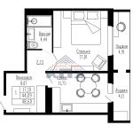 1-комнатная квартира 48,58* кв.м. (45,95 кв.м.; 46,15 кв.м; 48,27 кв.м.; 48,6 кв. м.) с увеличенной по площади кухней-гостиной почти 12 кв.м. и двумя лоджиями 4 и 5 кв.м. Выходы на лоджии из кухни и из жилой комнаты. Панорамное остекление даст вам возможность отдохнуть, любуясь отличными видами на зеленый массив. Помимо возможности для отдыха и хранения сезонных вещей, хозяйки очень ценят, когда им удобно вывесить на лоджию белье или быстро заморозить пельмени.  Увеличенное пространство на кухне, позволит вам использовать жилую комнату, квадратную в плане, под спальню. Здесь же может расположиться кабинет или кроватка для самого маленького члена семьи. Рядом располагается совмещенный санузел почти 4,5 кв.м., оснащенный всей сантехникой. В большой прихожей, более 8 кв.м., есть возможность установить не только вместительный шкаф-купе, но и устроить зону релакса. На кухне устанавливается электроплита. Окна квартиры выходят на восток.