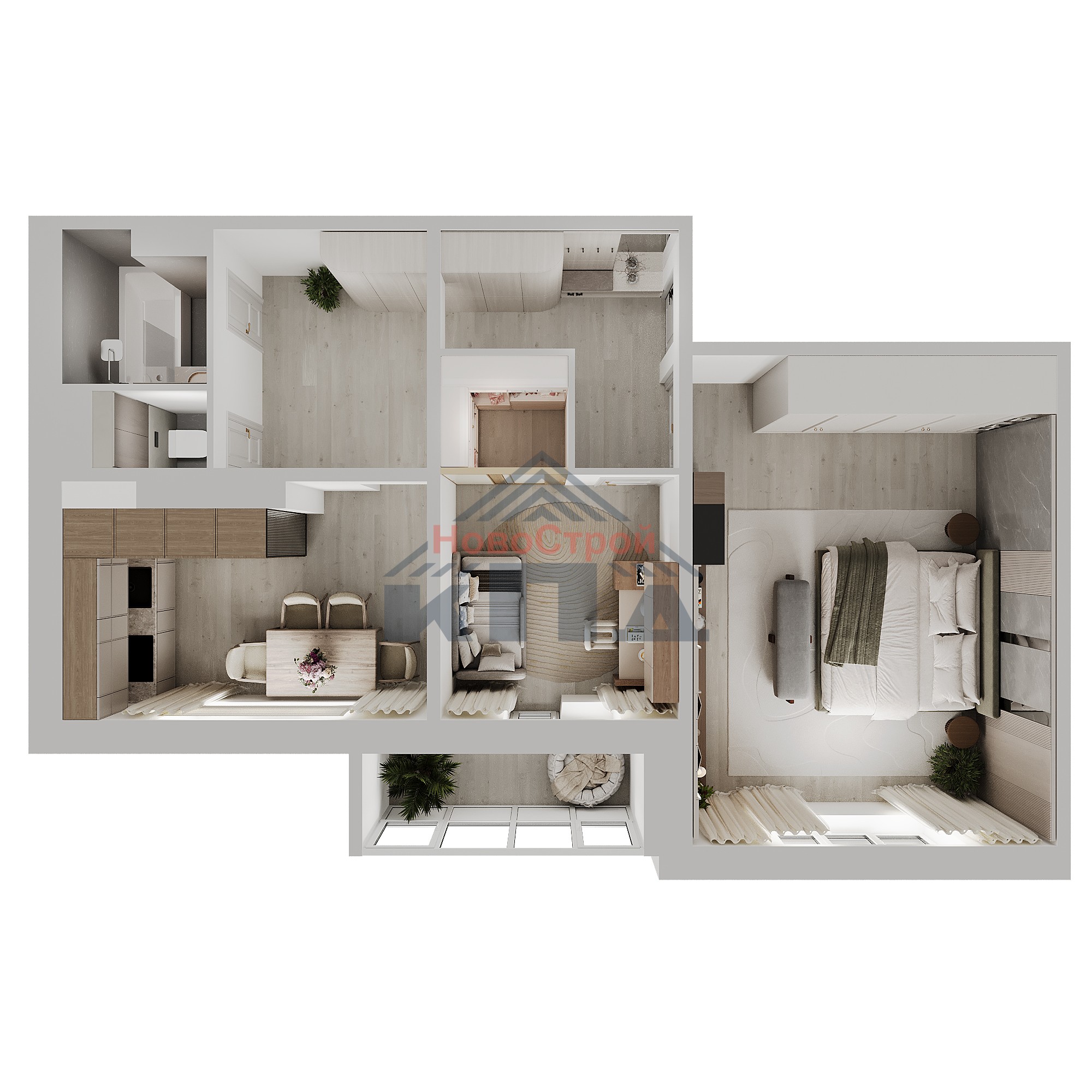 2-комнатиная квартира 66,47* кв.м (66,66 кв.м.) с двумя жилыми комнатами 10,45 и 25,35 кв.м. В большой комнате могут расположиться два- три ребенка, здесь будет достаточно места для хранения вещей и устройства спортивного уголка. В комнате поменьше есть выход на лоджию и выгорожена ниша, в которой может быть спальное место или место для гардероба. Кухня площадью почти 12 кв.м. оснащена электроплитой. Рядом с ней раздельный санузел, в котором установлена все необходимое сантехническое оборудование. В холле более 7 кв. м. есть место и для шкафа купе и для книжного стеллажа.