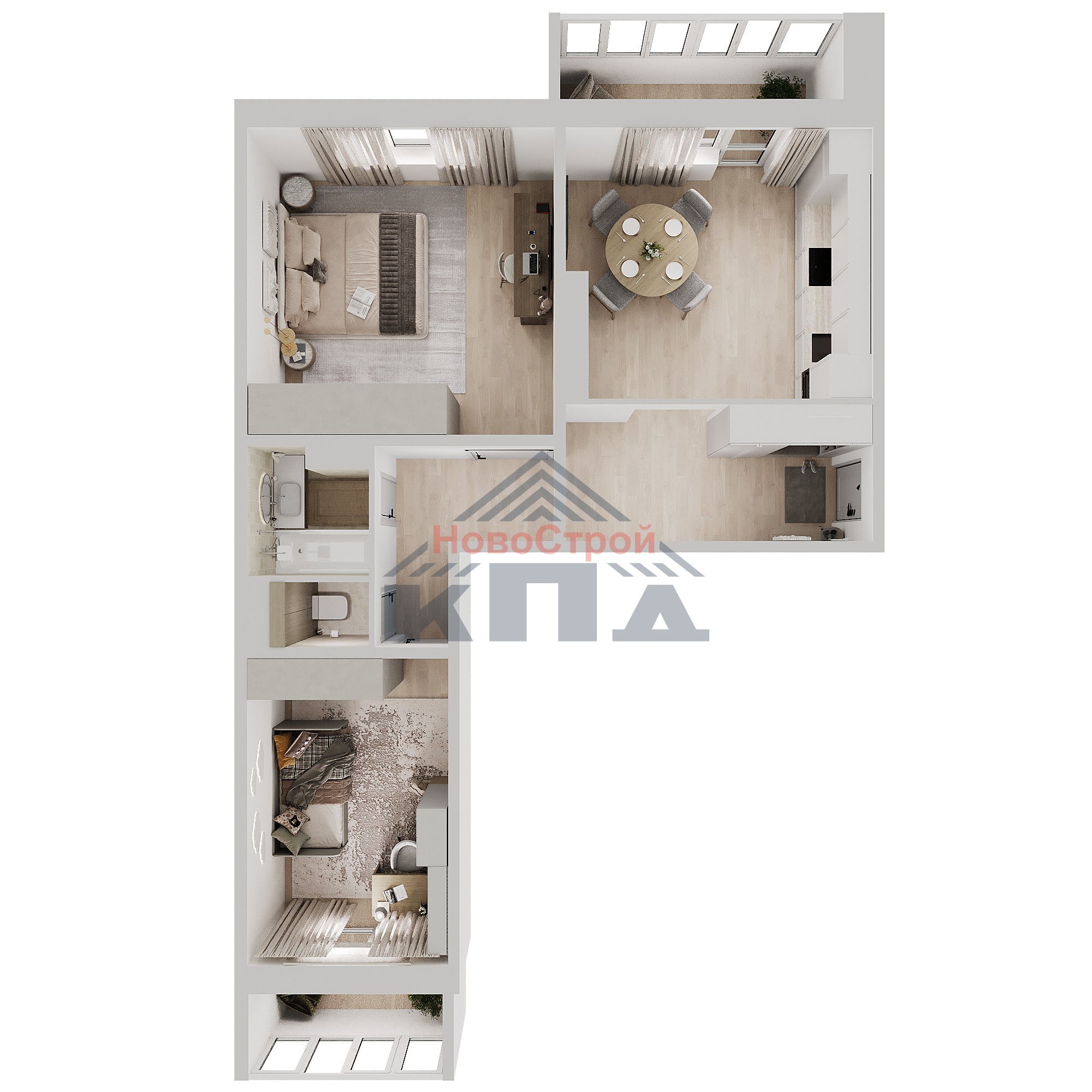 2-комнатиная квартира 68,69* кв.м (66,85 кв.м.; 67,08 кв.м.) с просторной кухней 16 кв. м.. Из кухни можно выйти на лоджию с панорамным остеклением, которая около 5 кв. м. Об этом мечтают многие хозяйки. Так удобно морозить пельмени, сделанные всей семьей за круглым столом или повесить белье, не бегая через всю квартиру. Да и всем членам семьи будет очень приятно отдохнуть после дел праведных с чашкой чая, наслаждаясь красивым пейзажем. Такая площадь кухни позволит вам использовать ее как кухню-гостиную, а две комнаты: 18,84 и 12,33 кв. м. – использовать под спальню и детскую или под две спальни. В них прекрасно могут поместиться, помимо кроватей: шкафы, столы, тумбы и стеллажи. Из комнаты меньшей площадью есть выход на лоджию 3,14 кв.м. в квартирах 1 и 2 этажей. Между комнатами расположен раздельный санузел, где установлено все необходимое сантехническое оборудование. А в большом коридоре (более 8 кв. м.) можно установить вместительный шкафы-купе и спортивный уголок.